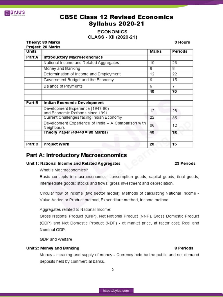 Economics 2020 21 Official Syllabus For Class 12 Cbse Youtube